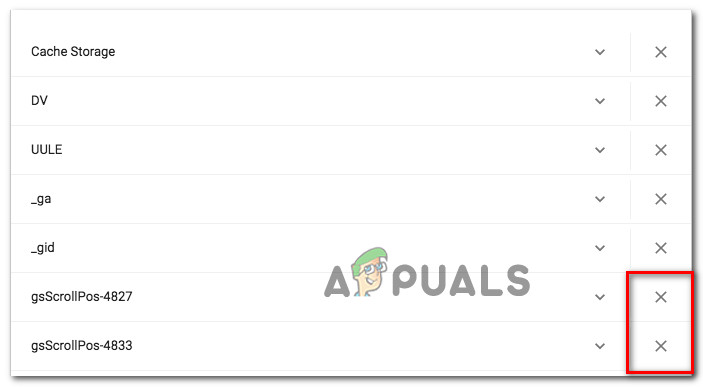 Removing all GSScrollPos cookies - Once every gsScrollPos cookie has been deleted, restart your Chrome browser and the issue should now be resolved.