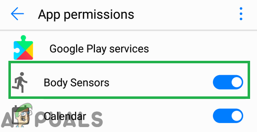 Tapping on the permissions option and then disabling the body sensor toggle - Now check to see if the issue still persists.