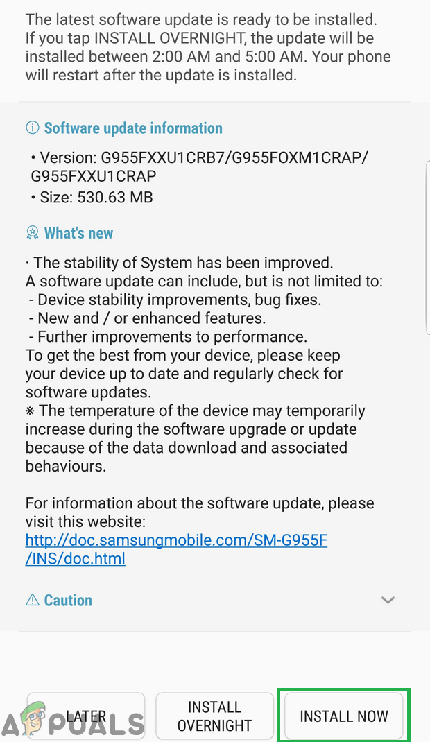 Tapping on the software update option - The phone will prompt you with options to install it now or later tap on the “Install Now” option.