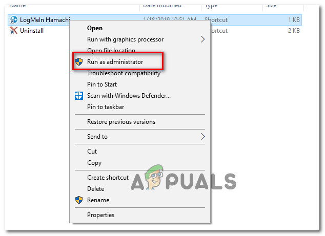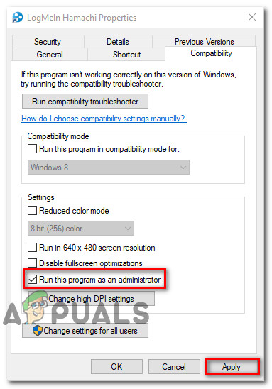- Hamachi app doesn’t have administrative privileges – The issue is often occurring because, for some reason or another, the Hamachi app doesn’t have administrative privileges. In this case, you can resolve the error by forcing the application to run with admin privileges.
