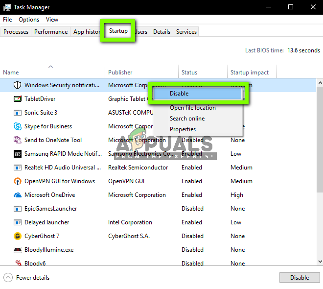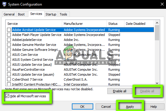 - Now restart your computer and check if the issue still persists. If the error message goes away and you are able to play your game without any problems, it means that there was either a service or an application which was causing the problem. Enable a chunk of these and check again. If the problem comes again when you enable a chunk, you would know who the culprit is.