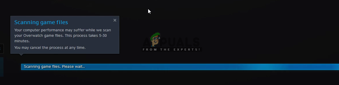 Before we start with the technical stuff, you should consider waiting for the issue out. Usually, within a minute, the game fixes itself and launches successfully without any issues. This is common behavior for Blizzard applications including World of Warcraft, Starcraft etc. If your waiting time goes above 2 minutes, it means that there is probably some other issue and you should proceed down to the solutions.