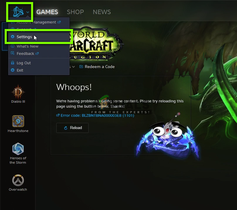 It seems that the Blizzard application tries to open the game in the ‘optimal’ streaming environment but fails to do so which causes the game to go into a not-responding state. In this solution, we will open your Blizzard application and disable Streaming.