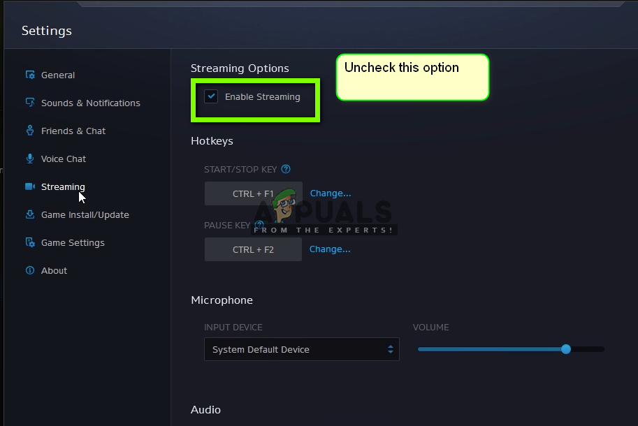 The Blizzard application has a ‘streaming’ option which allows users to stream their gameplay without the use of third-party software when playing. As said in their official correspondence, the streaming service is an ‘intensive’ action and consumes a lot of PC resources. We saw several cases where Hearthstone was not responding because the Streaming option was enabled even though the Streaming was not taking place (the game didn’t even start!).