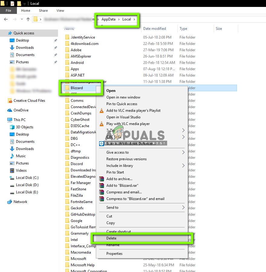 - Navigate into each directory one by one and delete the Blizzard This will delete all the temporary configurations of the game.