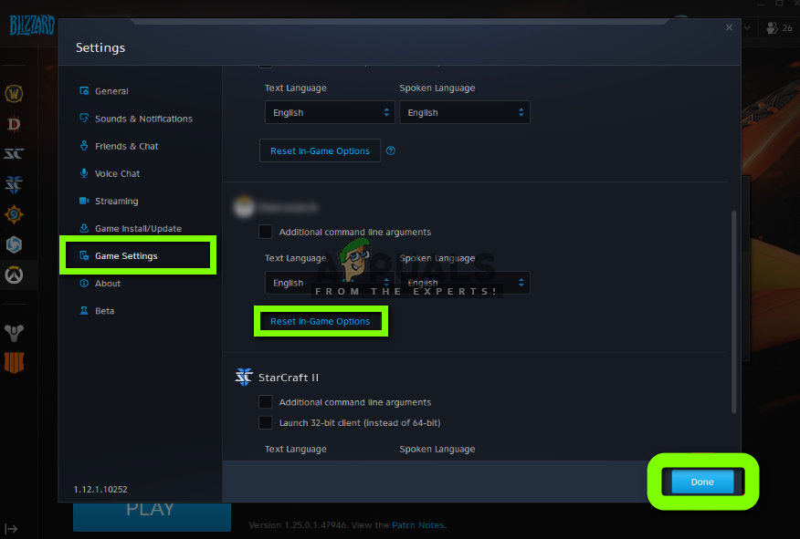 - Click on Done after this is done. Now Restart the Blizzard application and run your game. Check if the issue is resolved.
