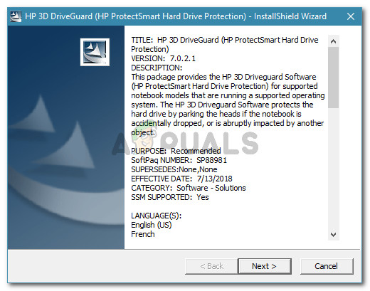 - Outdated version of HP 3D Driveguard – Based on HP’s official documentation, this issue might occur if the machine is using an outdated version of 3D DriveGuard. Several users encountering the same issue have reported that the issue was fixed once they installed the latest version available.