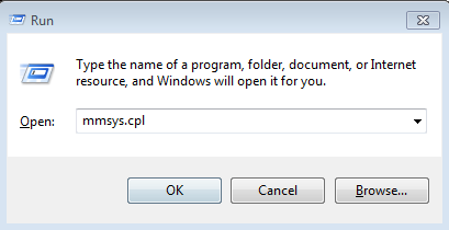 - Type mmsys.cpl and hit enter to open the sound and audio device settings window.