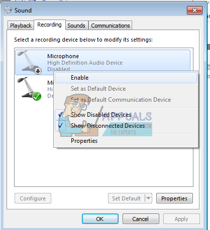 - If there is any microphone device that is disabled, right click on it and select “Enable”