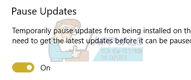 - Scroll down until you find the heading of Pause Updates. Enable this setting and restart your computer for the changes to take effect.
