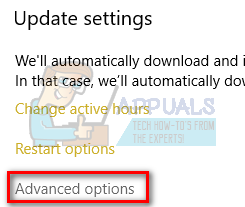 - Now head back to the updates window and select “Advanced options” present under the heading of Update settings.