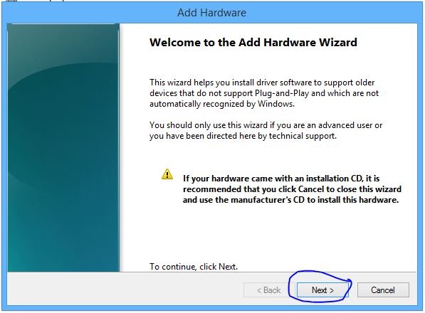 - Select Action, then Add Legacy Hardware.