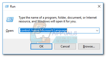 - Press Windows key + R to open a Run window and type “control /name Microsoft.Language”. Hit Enter to access the Language section of Control Panel.