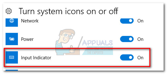 Note: Prior to Creators Update – select the Taskbar tab and click on the Customize button associated with the Notification Area. - Scroll down to Input Indicator and make sure the toggle associated with it is set to ON.
