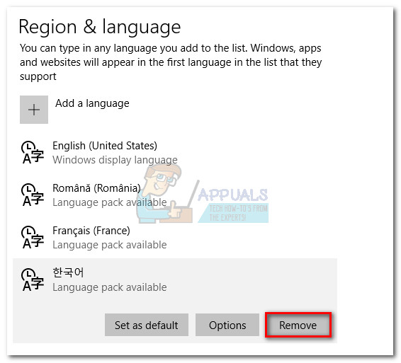 If you’ve followed all of the above methods without success, let’s try re-downloading the additional language pack that you’re trying to use (besides English). Some users have reported that they managed to resolve this particular IME issue by accessing the Region & Language settings and re-downloading the language pack that is causing the issue.