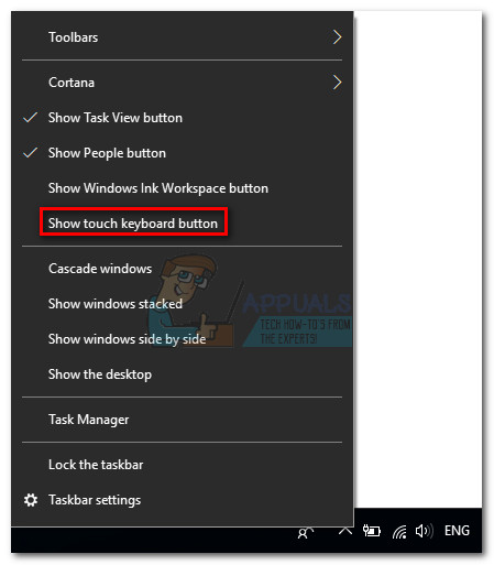In the event that the IME icon is missing from the right-section of you’ll toolbar, right-click on any open space on your toolbar and choose Show touch keyboard button. This should enable the touch keyboard, but your IME icon should back along with it. If you’re able to change languages normal, you’ve just resolved your issue. Else, continue with the next method below.