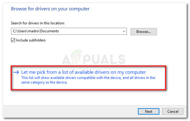 - In the next screen, click on Browse my computer for driver software and then click on Let me pick from a list of available drivers on my computer.