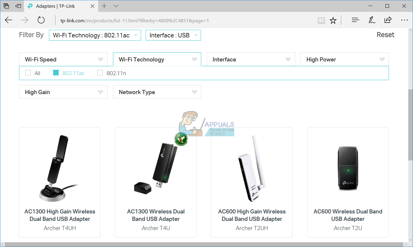 - Filter devices by Wi-Fi technology and Interface. You need to choose 11ac as Wi-Fi technology and USB as Interface.