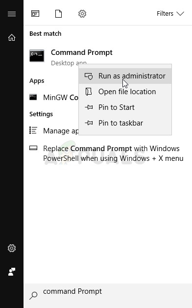 - Search for “Command Prompt” right there in the Start menu (just start typing) or by pressing the search button next to it and typing then. Right-click on the first result at the top of search result list and select the “Run as administrator” option.