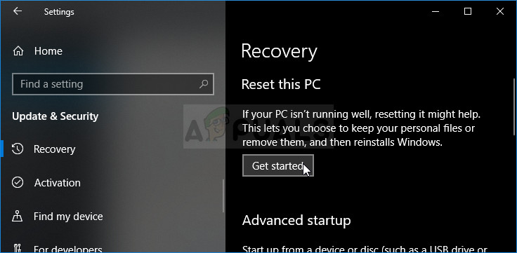 - Navigate to the Settings app on Windows 10. You can get there by clicking the gear icon in the lower left part of the Start menu. Select the “Update & security” option and click on Recovery tab in the left pane.