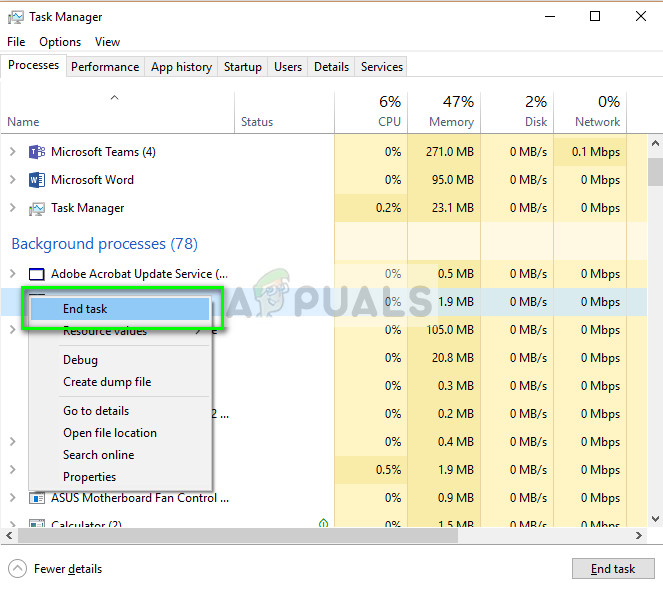 - Once in the task manager, kill all AMD processes.