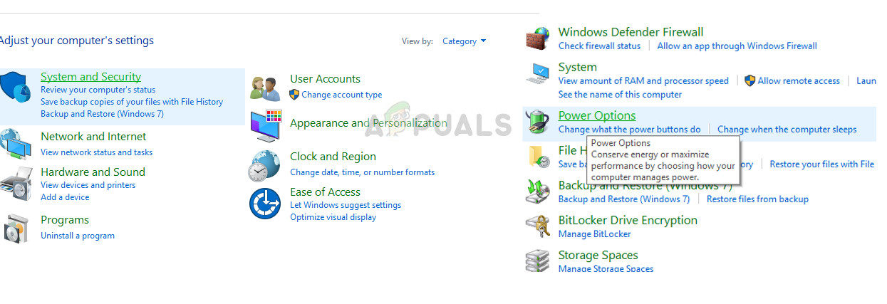 - Press Windows + R, type “control” in the dialogue box and press Enter. Once in the control panel, click on System and Security and then click Power Options.