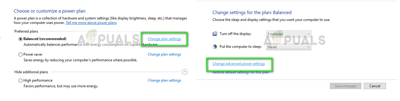 - Now select the power plan you are currently using and click Change plan settings. A new window will open up. Click Change advanced power settings.