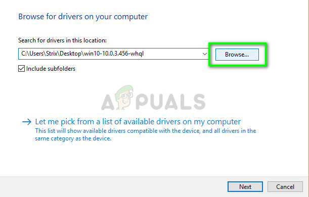 - Switch back to the device manager and click on manual Now select Browse to navigate to the file you downloaded and click it.