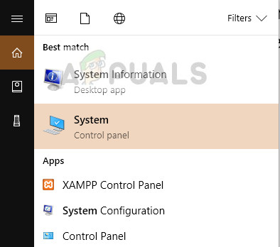 - Press Windows + S to launch the search menu of your start bar. Type “system” in the dialogue box and select the option associated with the control panel. You can also navigate to System using the control panel directly.