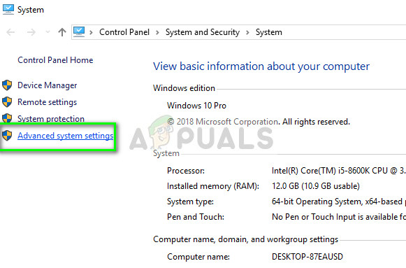 - Once in the system, click on “Advanced system settings” present at the left side of the screen.