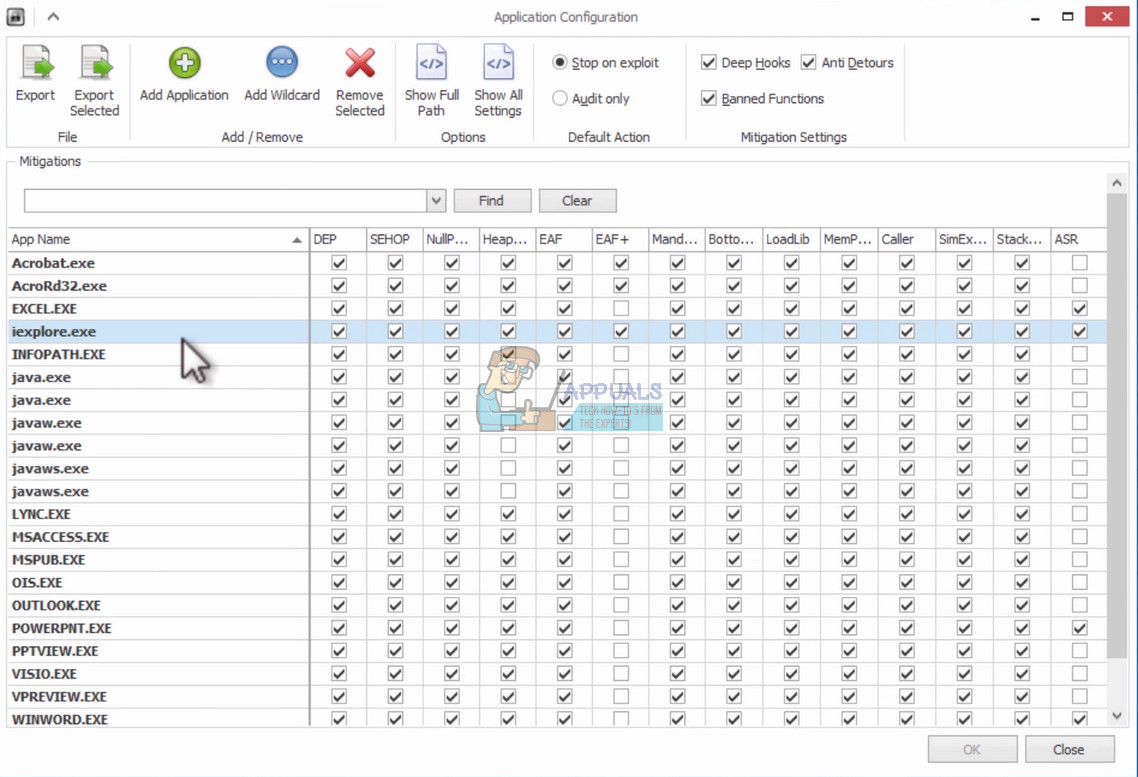 Note: If disabling the mitigation for IE doesn’t work, you can try disabling it for ‘iexplore.exe’ as seen in the image above. Also, keep in mind the risks associated with disabling security software on your computer.