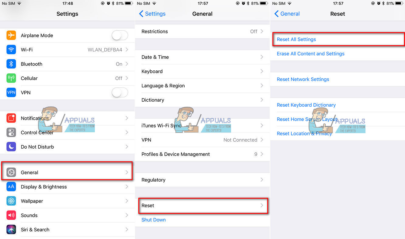 - Tap on Reset All Settings.