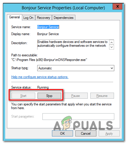 Restarting the Bonjour service - Once the service is restarted, click on Apply to save the modification, then launch iTunes once again and see if the problem is still occurring.