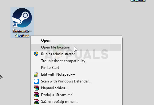 - Additionally, if you have the Steam client’s shortcut on the desktop, you can simply right-click on it and choose the Open file location option from the context menu which will appear.