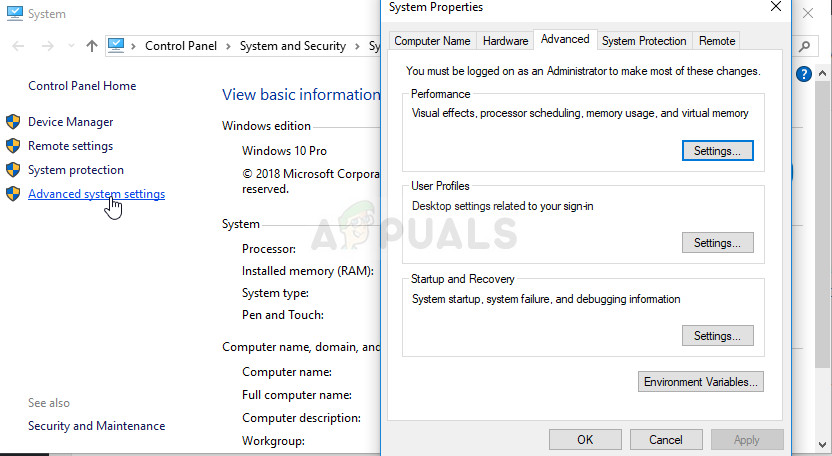 - Right-click either on My Computer/This PC depending on the version of Windows you have installed on your computer and choose the Properties option. After that, locate the Advanced system settings button at the right side of the Properties window, click on it, and navigate to the Advanced tab.