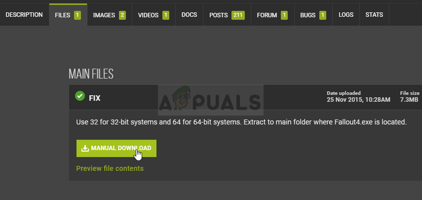- Navigate to this link and scroll down until you see a bunch of tab. Click the Files tab and click the Manual Download button on the site. Save the file in your Downloads folder.