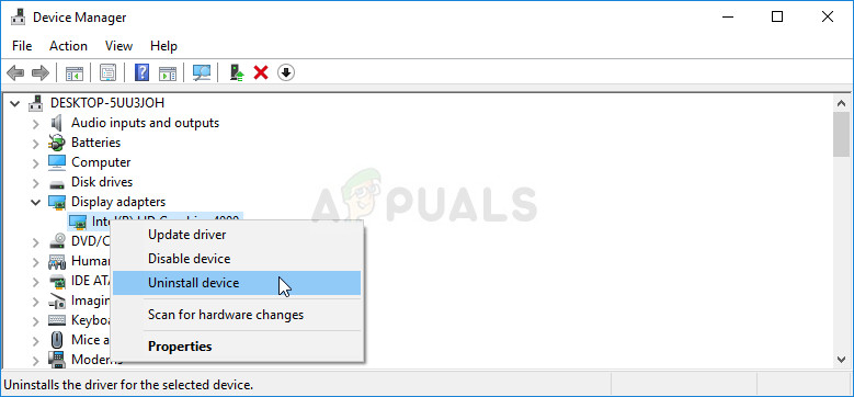 - Confirm any dialogues which may ask you to confirm the uninstallation of the current graphics device driver and wait for the process to finish.