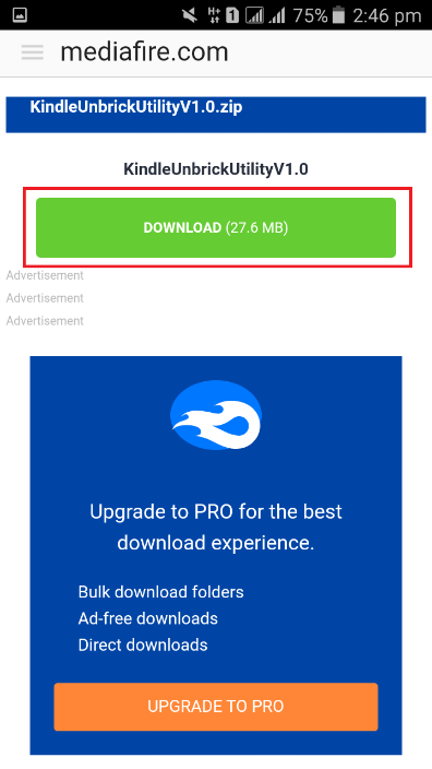 - The Kindle Fire Unbrick Utility application. To download and install the app, visit mediafire.com/?3or3bojpiu00oos. Click DOWNLOAD.