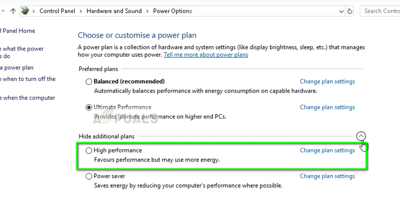 Power options – Control Panel - Choose Maximum performance from the options, save changes, and exit.