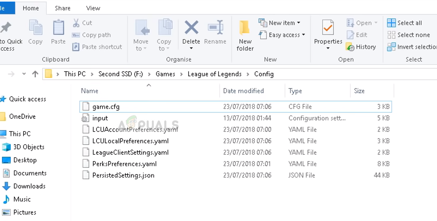 ‘game.cfg’ – League of Legends installation folder - Copy the existing ‘game.cfg’ file as a backup. Use the downloaded folder to find the appropriate settings for your hardware, and copy the config file to the LoL config folder. Click Yes to replace if prompted.