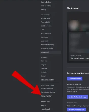 - Scroll down and click Game Overlay under the Activity Settings tab.