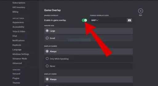 - Toggle on Enable in-game overlay.