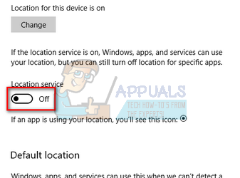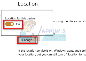 - Now click on the “Change” icon present under the heading of Location. A new dialogue box will appear enabling you to either your location or off.