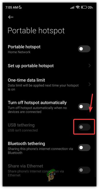 - Here turn on the USB tethering.