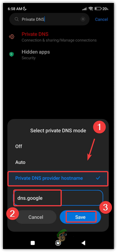 - Tap on Private DNS, then select Private DNS provider hostname.