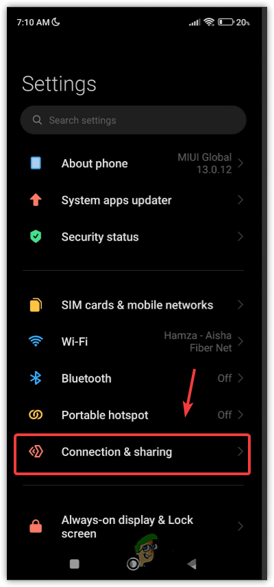 - Open Settings, and go to Connection & Sharing.