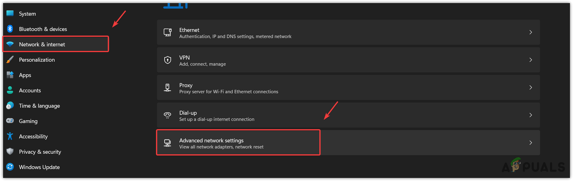 - Go to Network & Internet from the left and click Advanced network settings to view more settings.