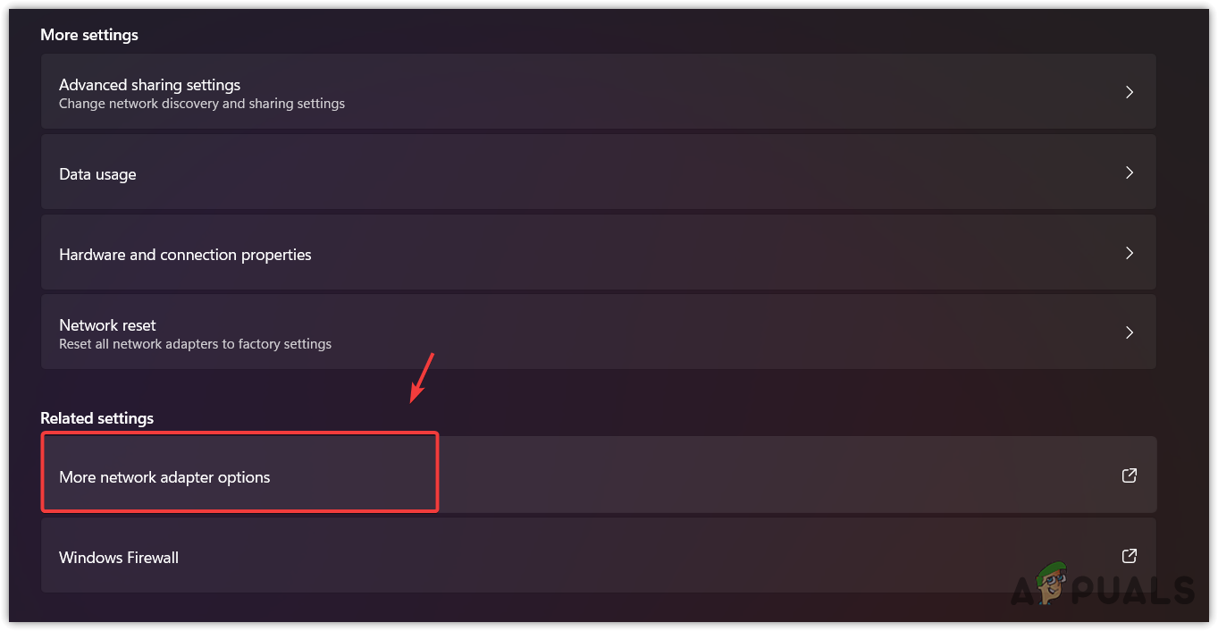 - Click More Network adapter options.