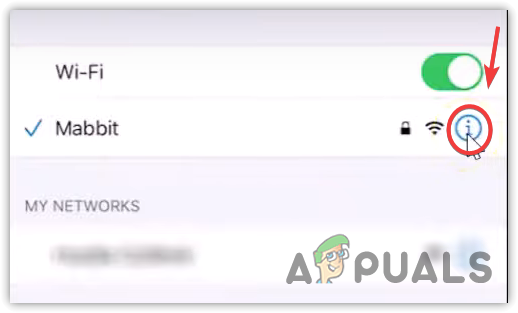- Tap on the I button next to the connected WiFi.