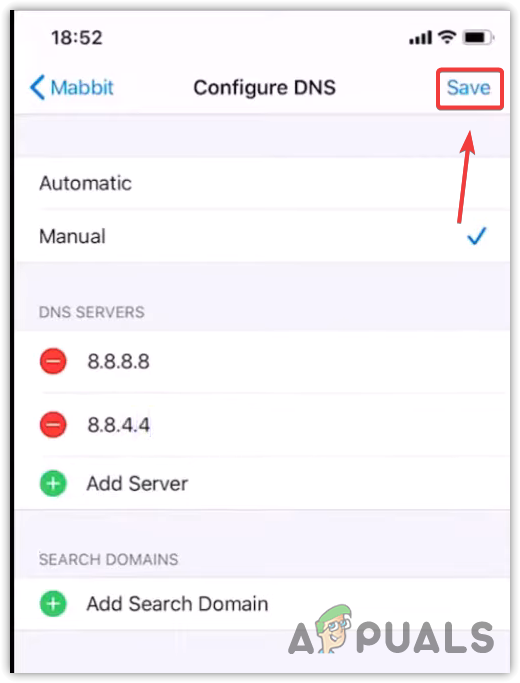 - Now tap on Configure DNS, then tap on Manual.